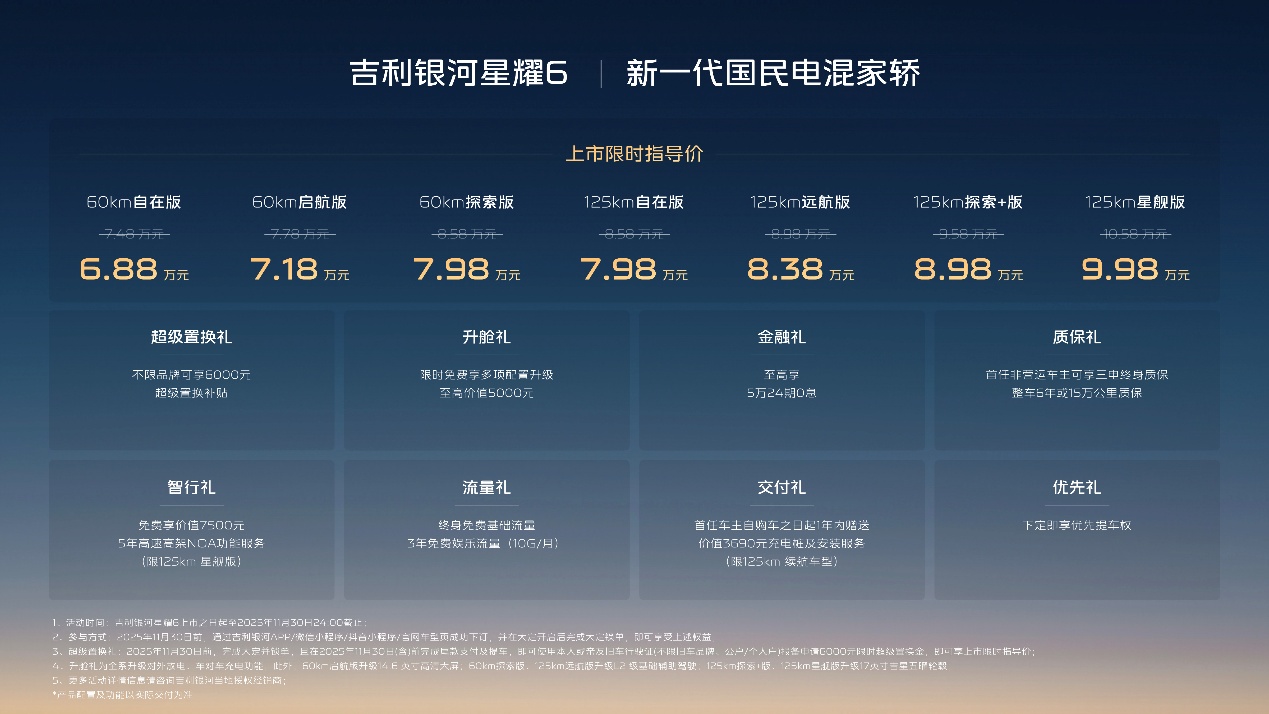 不仅如此,星耀6还用“四大越级满配”——B级空间、20万级安全、旗舰级智能、“开不坏”的品质,彻底颠覆“A级车=将就”的传统认知,树立“高质优价”的市场新标准。业内专家分析指出,星耀6有望成为车市新爆款,甚至具备“新一代国民家轿”的潜质。