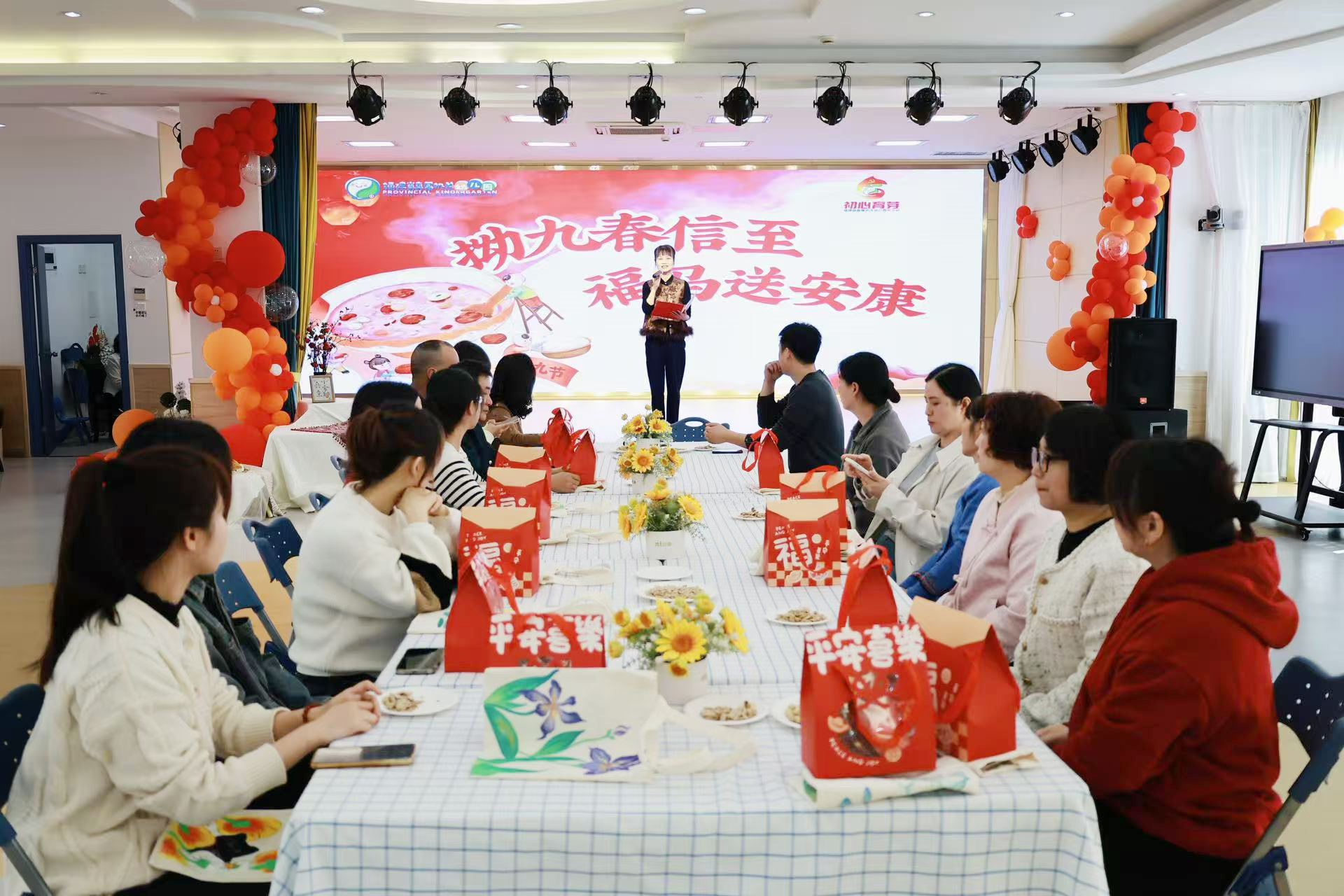 园内教职工活动同样温情满满,逢“九”教职工围坐畅谈,园长送上节日祝福,工会为教职工送上长寿面与暖心福粥,幼儿们将自制礼物送到老师手中,让“孝亲敬老”的美德在师幼互动中双向传递。