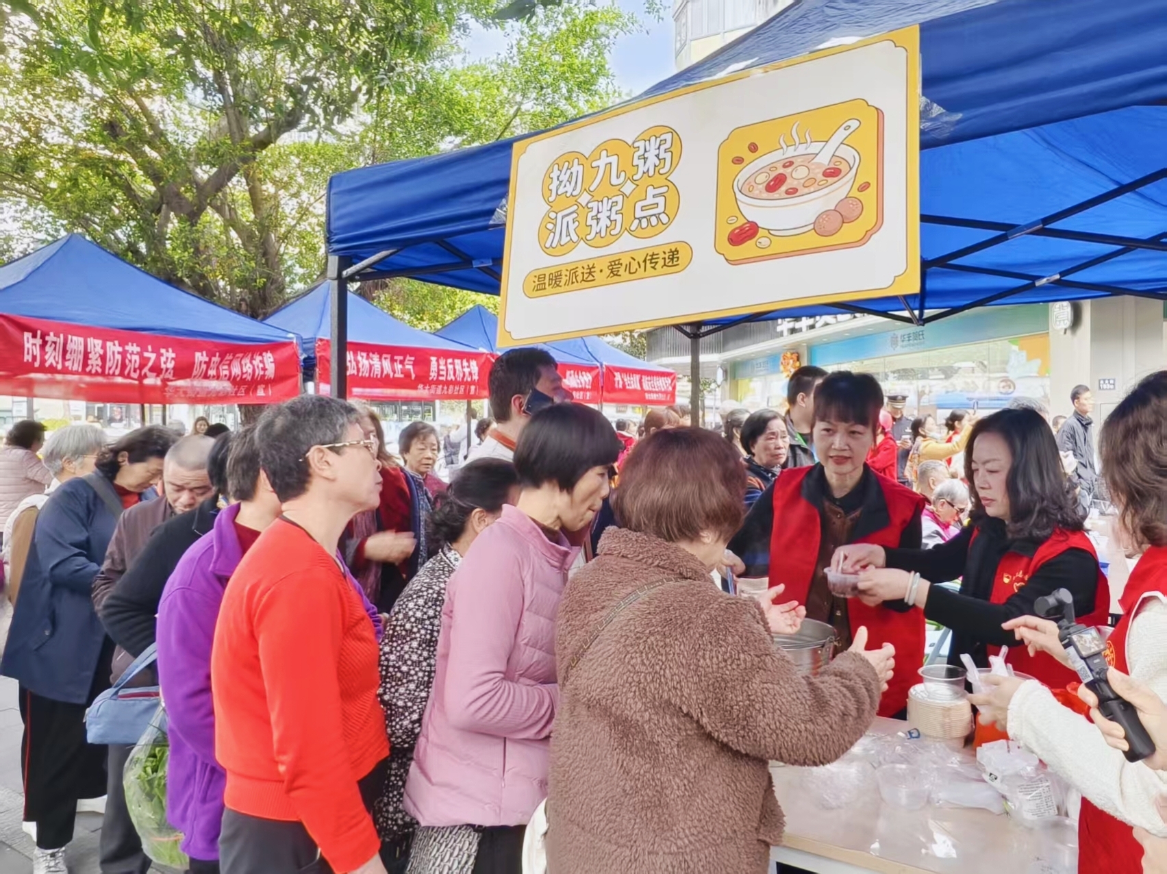 此外,党员教师与幼儿代表还走进九彩社区,为社区老人送上拗九粥和爱心礼物,他们表演《幼儿武术:中华孝道》《诗朗诵:孝传万家,福满拗九》,并入户走访高龄、独居老人,把节日的温暖与关怀送到老人身边。