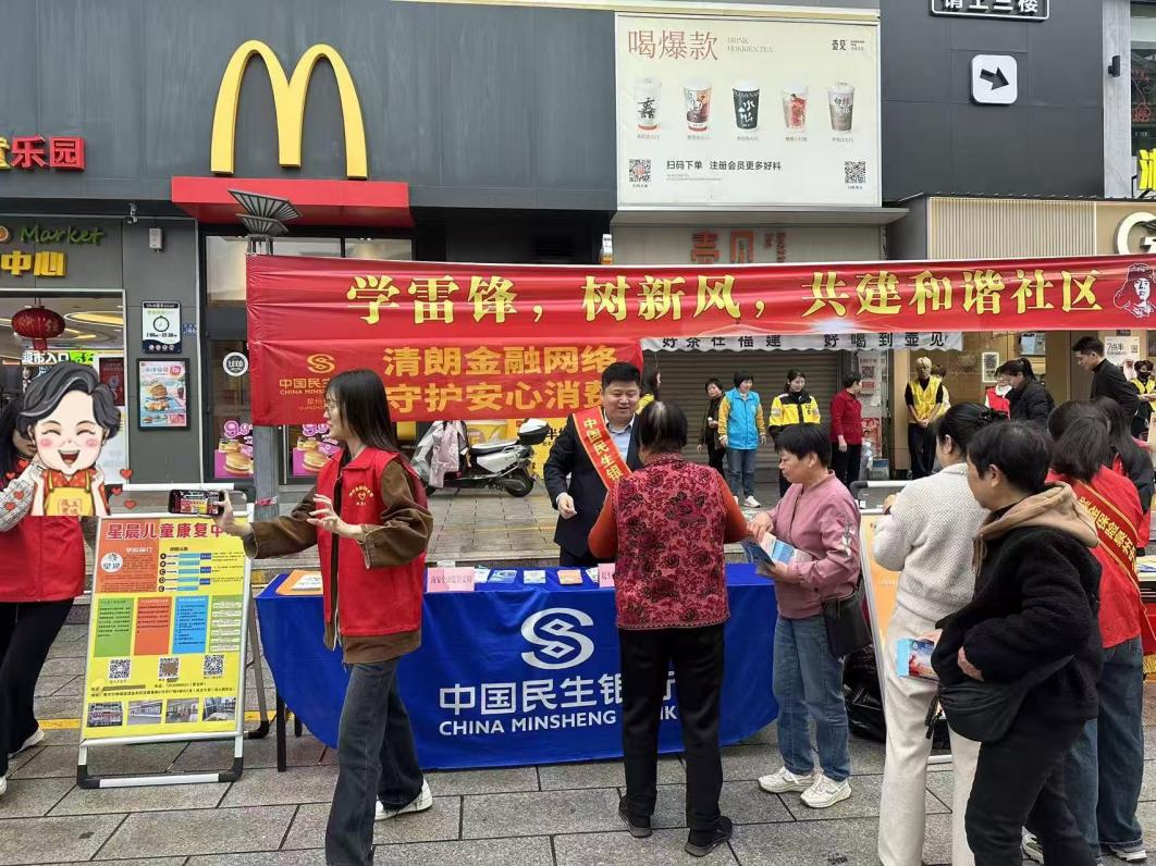 近日,南安市溪美白沙崎社区、南安金融监管支局携手民生银行南安支行,在社区金丰购物中心前广场举办“学雷锋,树新风,共建和谐社区”金融知识宣传暨消费者权益保护活动,将雷锋精神融入金融为民服务,为外卖员、快递员及老年群体送上实用金融安全指南。