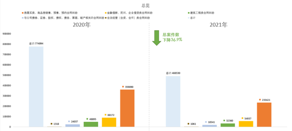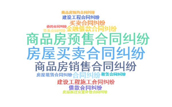 从合同纠纷的案由上看,房屋买卖合同纠纷、商品房预售合同纠纷、商品房销售合同纠纷、合同纠纷、金融借款合同纠纷、买卖合同纠纷、建设工程施工合同纠纷、借款合同纠纷、建设工程合同纠纷和房屋租赁合同纠纷的集中度最高,共计36.60万条,占比合同纠纷超8成。
