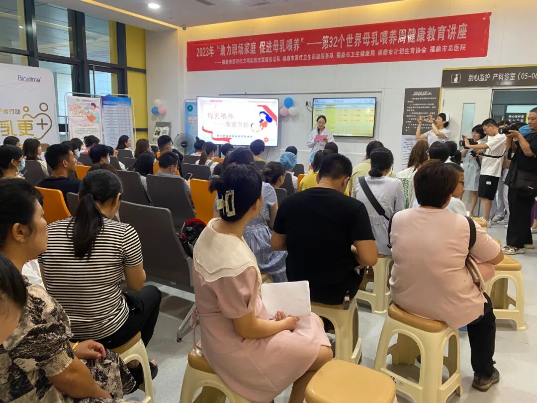 8月7日,宁德福鼎市计生协会联合市卫健局、市总医院、市妇幼保健院等单位开展“助力职场家庭,促进母乳喂养”第32个世界母乳喂养周宣传活动。