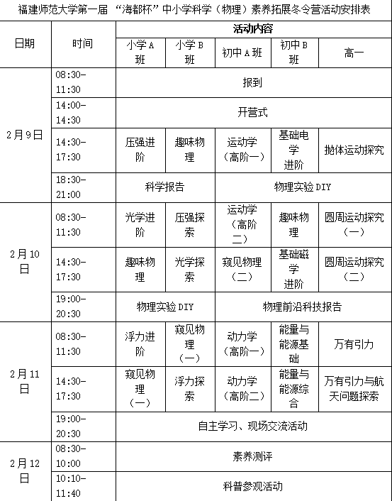 值得关注的是,本次活动将按学段及班级评选优秀营员并颁发证书,其中B班的优秀营员可直接候补进入将于2026年3月8日举办的福建师范大学首届“海都杯”青少年物理思维能力测评总评,为优秀学子提供进一步展示与提升的机会。