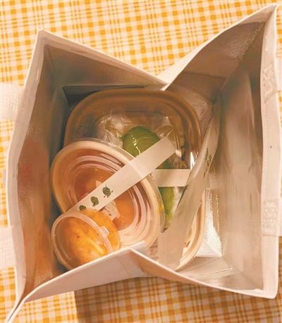近期,记者先后点过20多份外卖,每一次下单前都会勾选“不需要餐具”选项,但除了两家餐厅以外,其余大部分商家仍附赠了餐具;在这20多份外卖中,打包费最高为6元,最少为0.5元,其他普遍在1~3元间。而商家的“过度包装”情况日趋普遍,如“大碗装小菜”“大袋装小配料”等,导致包装容积率较高;包装材料方面则逐渐环保化,采用纸质包装袋的商家有10家,采用无纺布保温袋包装的有4家,其余仍采用普通塑料包装袋,但由于不少纸盒中依然存在塑料膜成分,且消费者循环利用无纺布保温袋的几率较低,这些外卖产生的垃圾依然会造成环境压力。