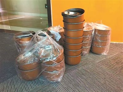 然而这还不是最夸张的。市民顾女士在天河区CBD上班,由于每天中午的休息和午餐时间只有一个小时,为了提高就餐效率,顾女士往往会和同部门的同事一同点外卖。但有一回点外卖经历让顾女士哭笑不得:她选择了一家煲仔饭餐厅,一共点了二十多份煲仔饭,价格在25元~40元不等,却不料每一份都是用电饭煲内胆独立包装的,“我们吃完之后,办公室里就突然多了二十多个内胆煲,场面颇为尴尬。后续我们打电话询问商家,商家表示不回收,于是大家只好将煲一起丢掉,给清洁工人造成的回收压力非常大。”除此之外,为招徕更多消费者,更有部分商家直接“点烤肉外卖赠送烤盘”“点牛肉火锅赠送小锅”。