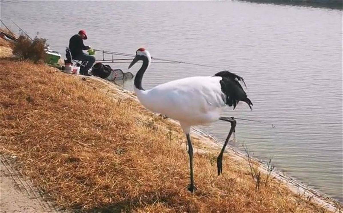 王先生以前也见过丹顶鹤,但都是远远地看,那天他第一次近距离地看到丹顶鹤,留下了深刻的印象。“高傲的神态,婀娜多姿的体态,真是仙气飘飘。”王先生表示,其他钓友喂它鱼,他也喂了10多条鱼,“它一直就在那里溜达,晚上我要回去了,还有其他钓鱼人在,它还在那里。”