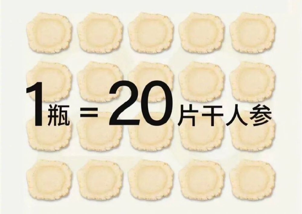 而“一整根”的产品定位,恰好契合了当下年轻人想熬夜又想养生的需求。根据产品介绍,1瓶=20片干人参,解决熬夜后遗症;益智、开心、明目、除邪气、止惊悸、定魂魄、安精神、主补五脏;调节肌体新陈代谢。