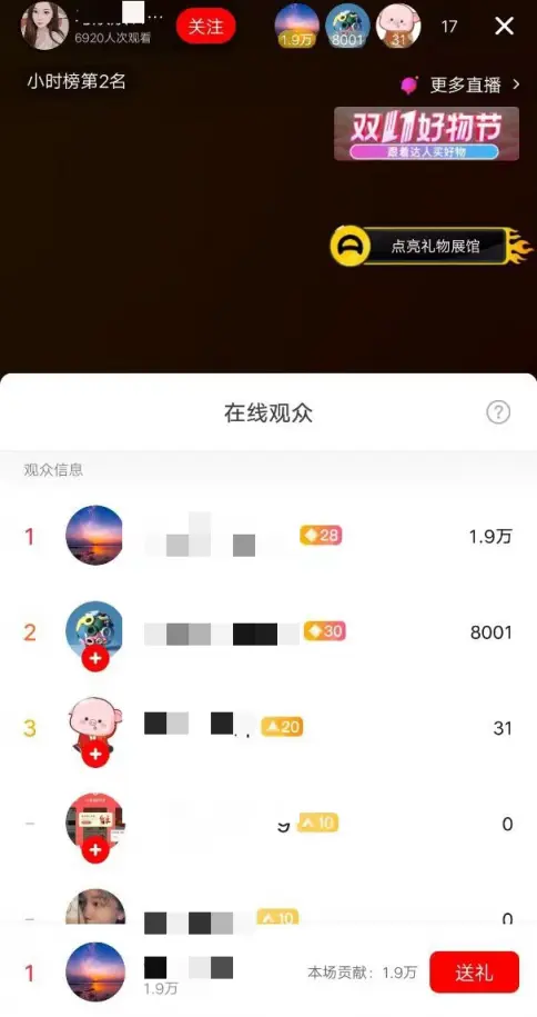 却有两个账号会刷大额礼物