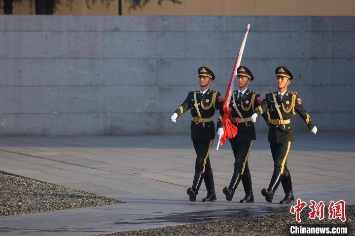 12月13日清晨,南京气温降至冰点。上午8时,着装整齐的旗手迈着正步,走向侵华日军南京大屠杀遇难同胞纪念馆集会广场中央。升国旗、下半旗仪式在这里举行。