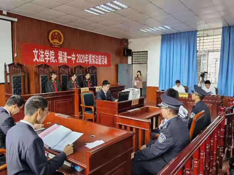 活动中,福清一中高一学生、福建技术师范学院2020级部分学生首先进行了集体宣誓,并在活动幕布上郑重签名。随后,还进行了模拟庭审。大家表示,通过此次活动加强了法治观念,进一步增强了推进全面依法治国、建设法治中国与中国特色社会主义法治体系、坚定不移地走中国法治道路的信心和决心。