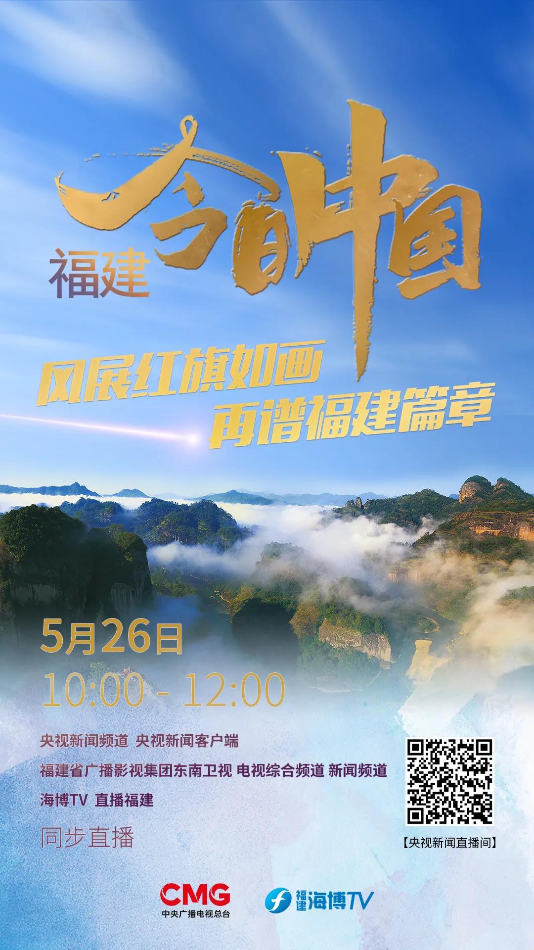5月26日上午10点,由中央广播电视总台福建总站和福建省广播影视集团融媒体资讯中心联合制作的《今日中国》福建篇将在央视新闻频道播出,央视新闻客户端同步直播。届时,福建省广播影视集团东南卫视、电视综合频道、新闻频道和海博TV将同步完整直播央视新闻频道的节目。