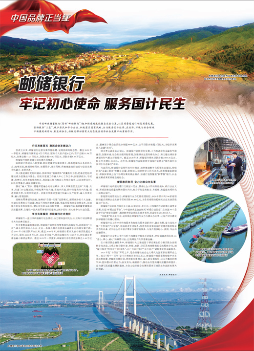 中国邮政储蓄银行(简称“邮储银行”)把加强党的建设摆在突出位置,以高质量党建引领高质量发展,坚持服务“三农”、城乡居民和中小企业,积极落实国家战略,全力服务实体经济,在经济、环境与社会领域不断展现新作为、彰显新担当,积极发挥好国有大行在服务经济社会发展中的重要作用。