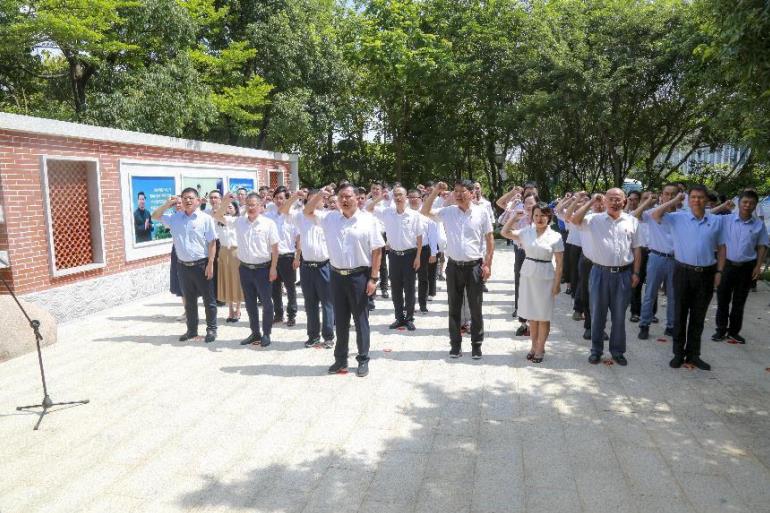 6月30日上午,在湖石淉植树点,在湄洲岛党工委书记吴海端的带领下,湄洲岛新老党员、预备党员们举起右拳,面向党旗庄严宣誓,句句铿锵的誓言,把对党忠诚化为勇担使命的强大动力。