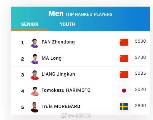 据澎湃新闻报道,随着WTT冠军赛布达佩斯站比赛的落幕,国际乒联公布了最新一期的世界排名。