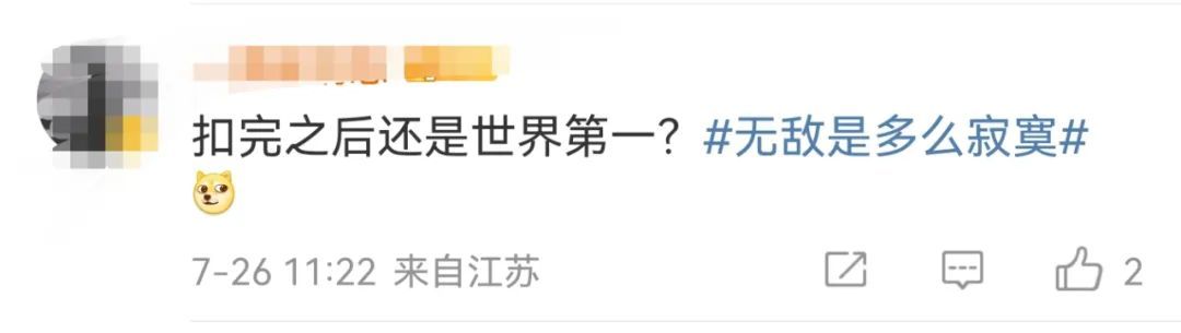 如今,他被扣1400分后依旧排名世界第一,引发网友热议: