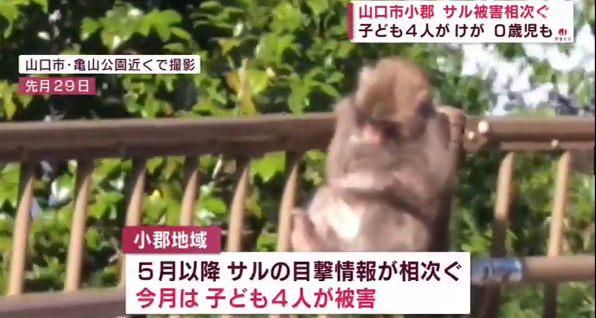 位于日本西南部的山口县小郡地区一只野猴多次闯入民宅和学校,攻击了约20人,其中年龄最小的受害者是一名10个月大女婴。