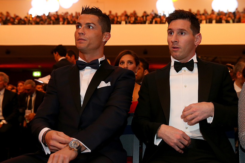 C罗和梅西参加国际足联金球奖颁奖典礼。(资料图)