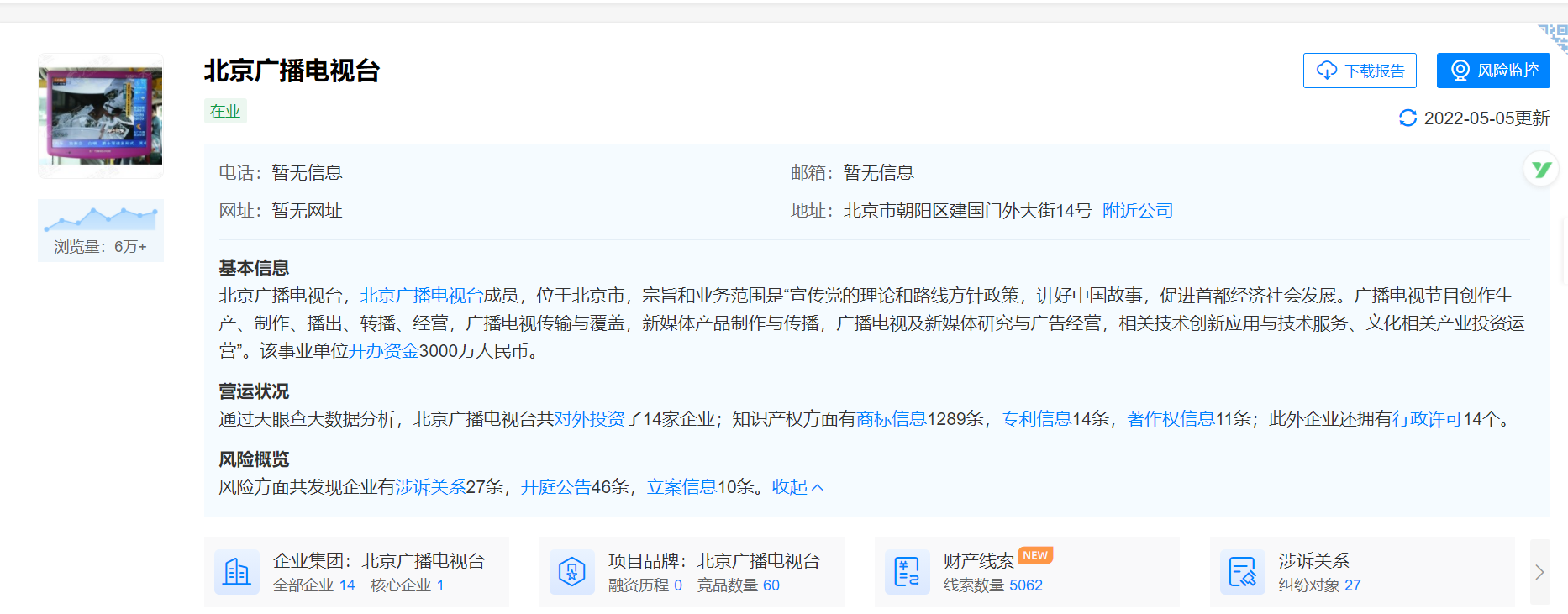 据悉,北京广播电视台涉及广播电视节目创作生产、制作、播出、转播、经营,广播电视传输与覆盖,新媒体产品制作与传播,广播电视及新媒体研究与广告经营,相关技术创新应用与技术服务、文化相关产业投资运营”。该事业单位开办资金3000万人民币。